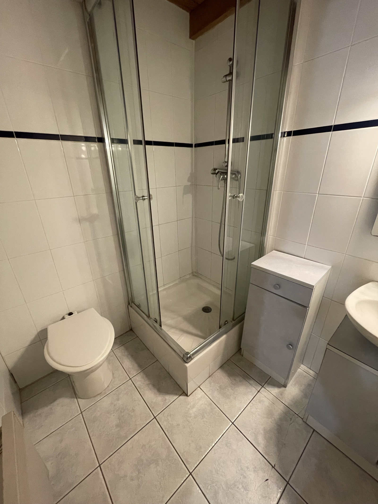 A l'étage, il y a une grande chambre, une salle de bain, et des combles à aménager.