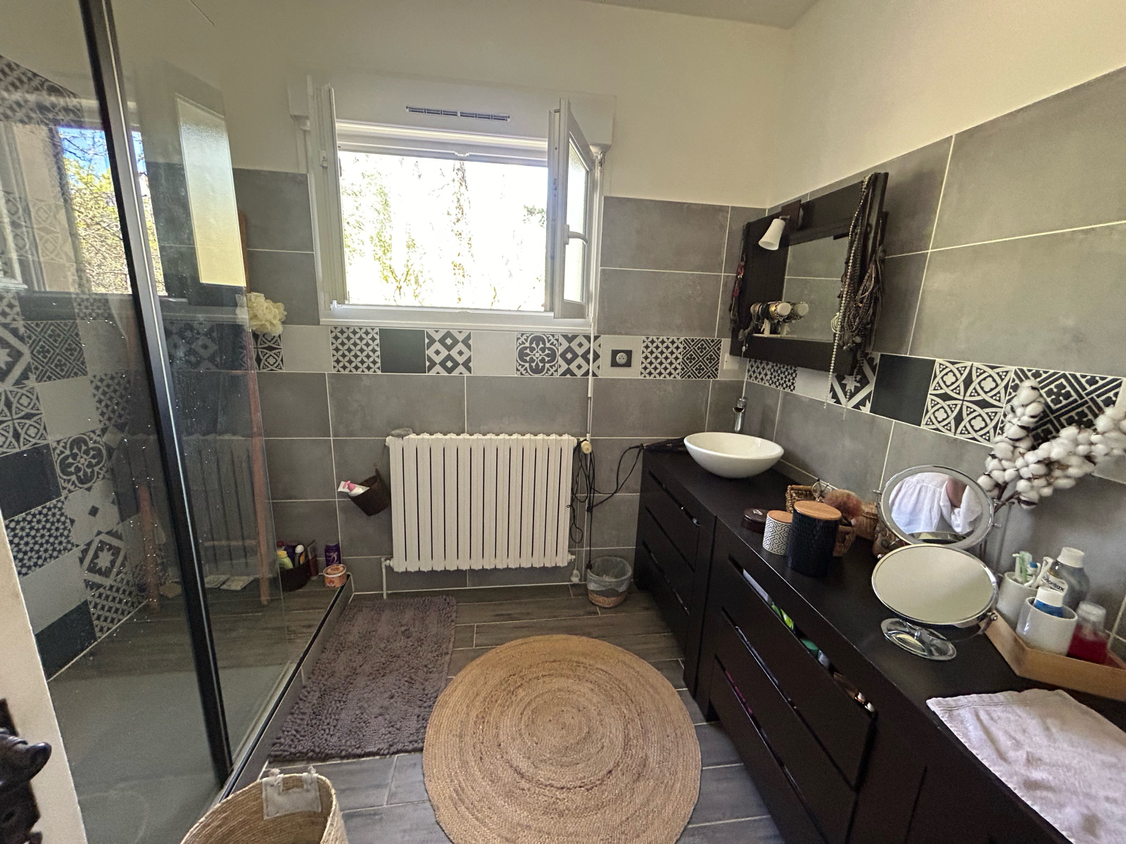 Agréable maison sans travaux : 3 chambres, un bureau, une grande salle d'eau, cuisine semi ouverte sur le salon séjour, une entrée séparée.