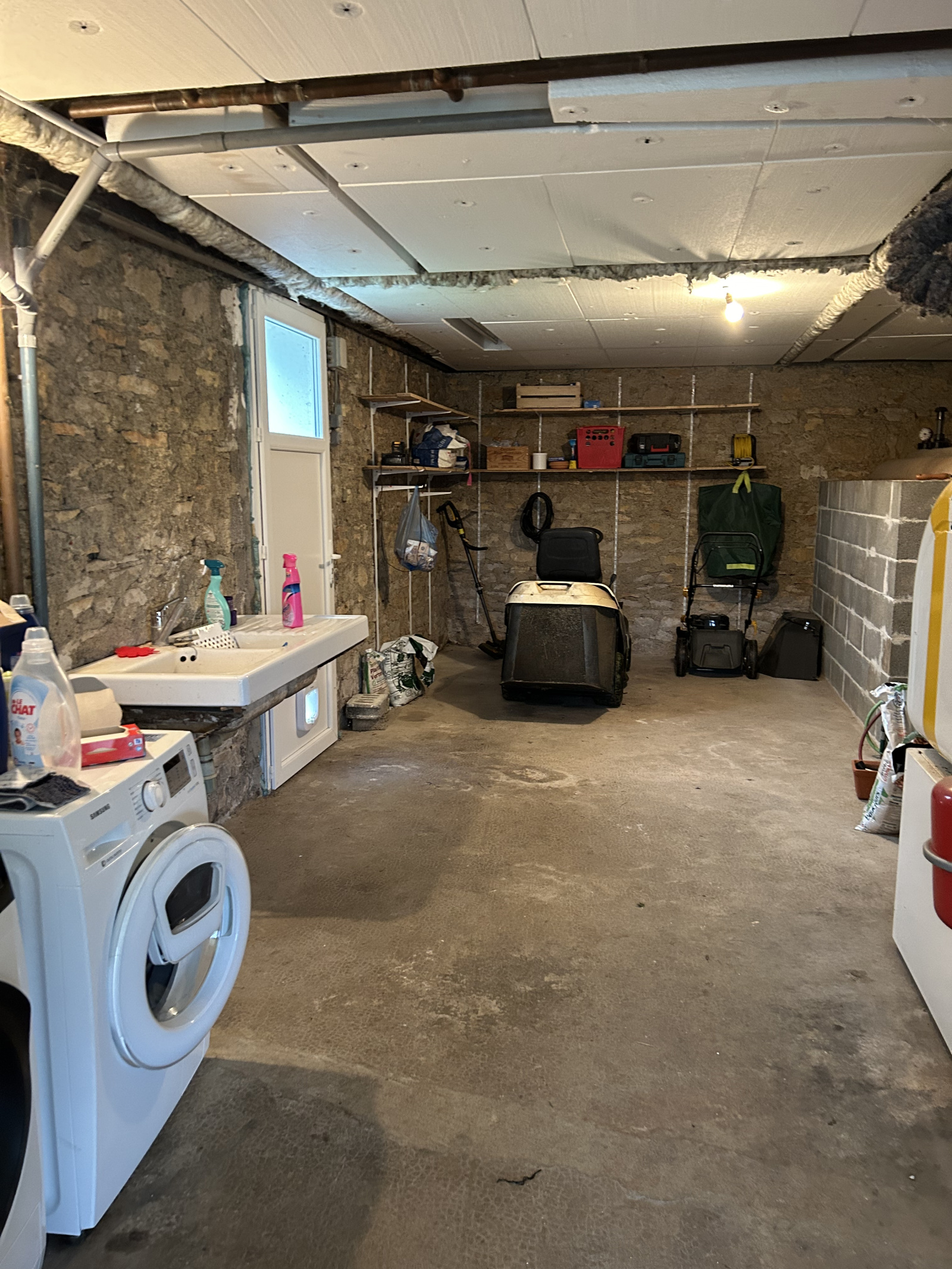 sous sol de 115m2 avec buanderie chaufferie une piéce fermée et deux accés porte de garage