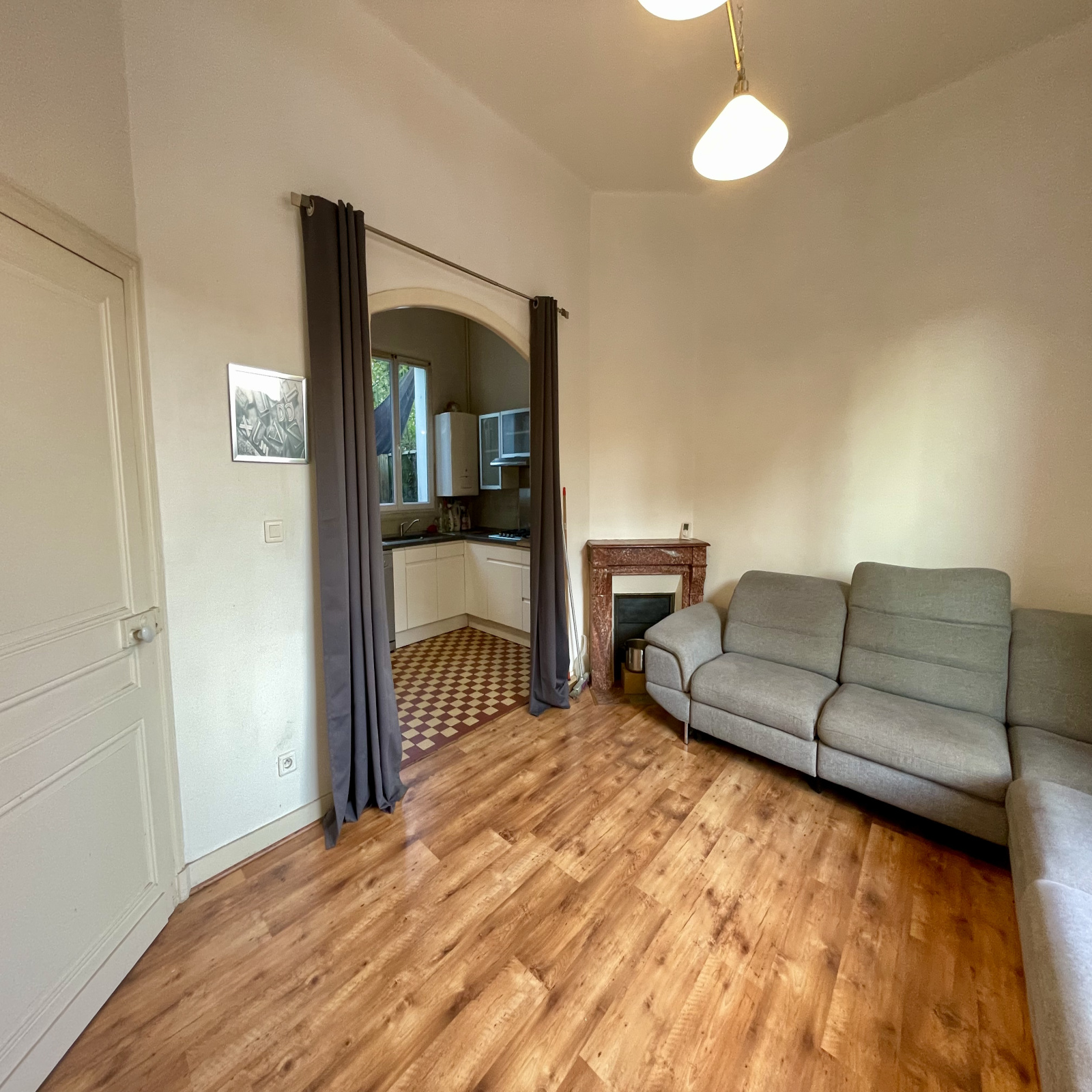 Maison de ville mitoyenne à rafraichir, dans secteur recherché, comprenant au rez-de-chaussée salon/séjour, cuisine semi-ouverte, salle de bains et wc. A l'étage se trouve 2 chambres, un bureau et un wc. A l'extérieur, petite cour devant et derrière.