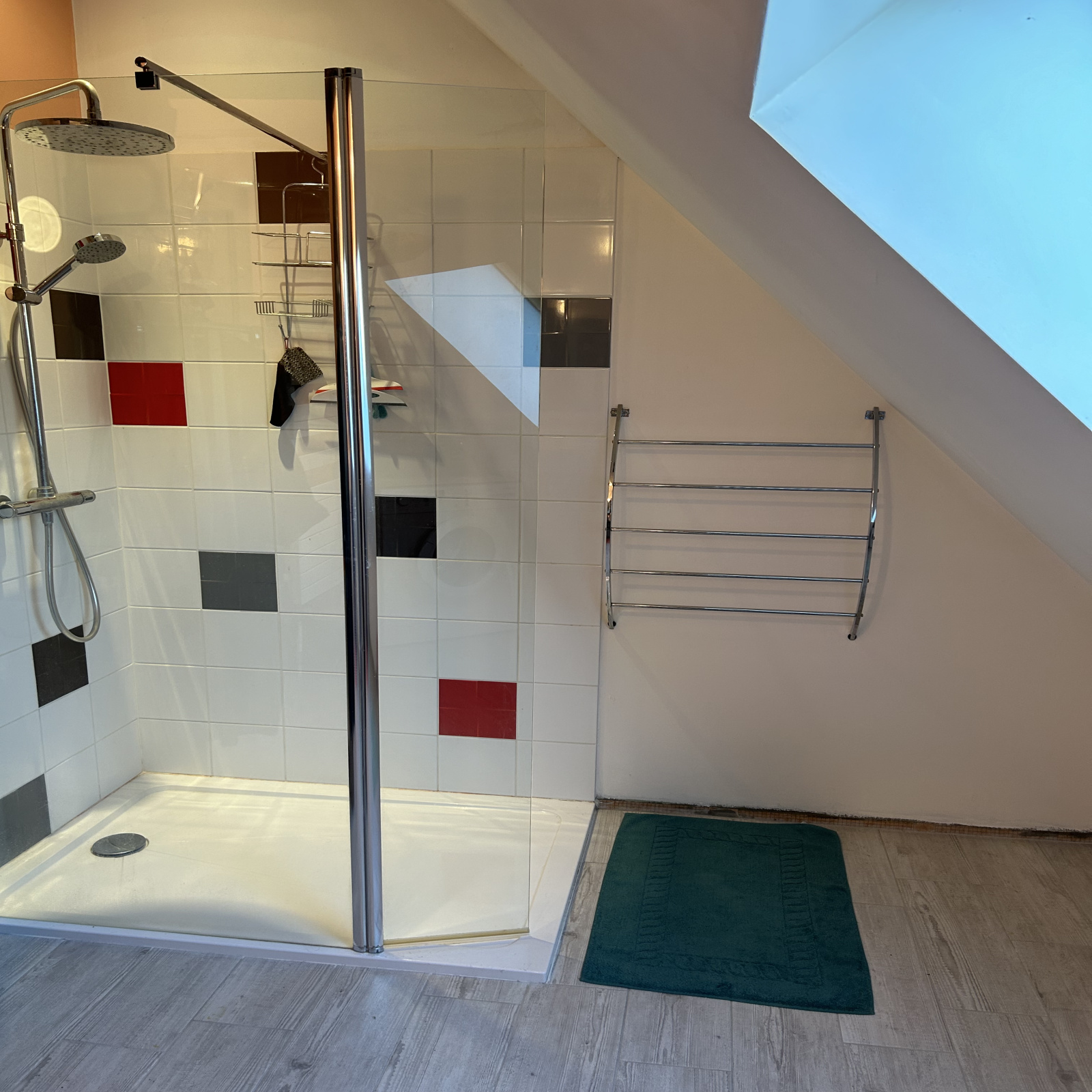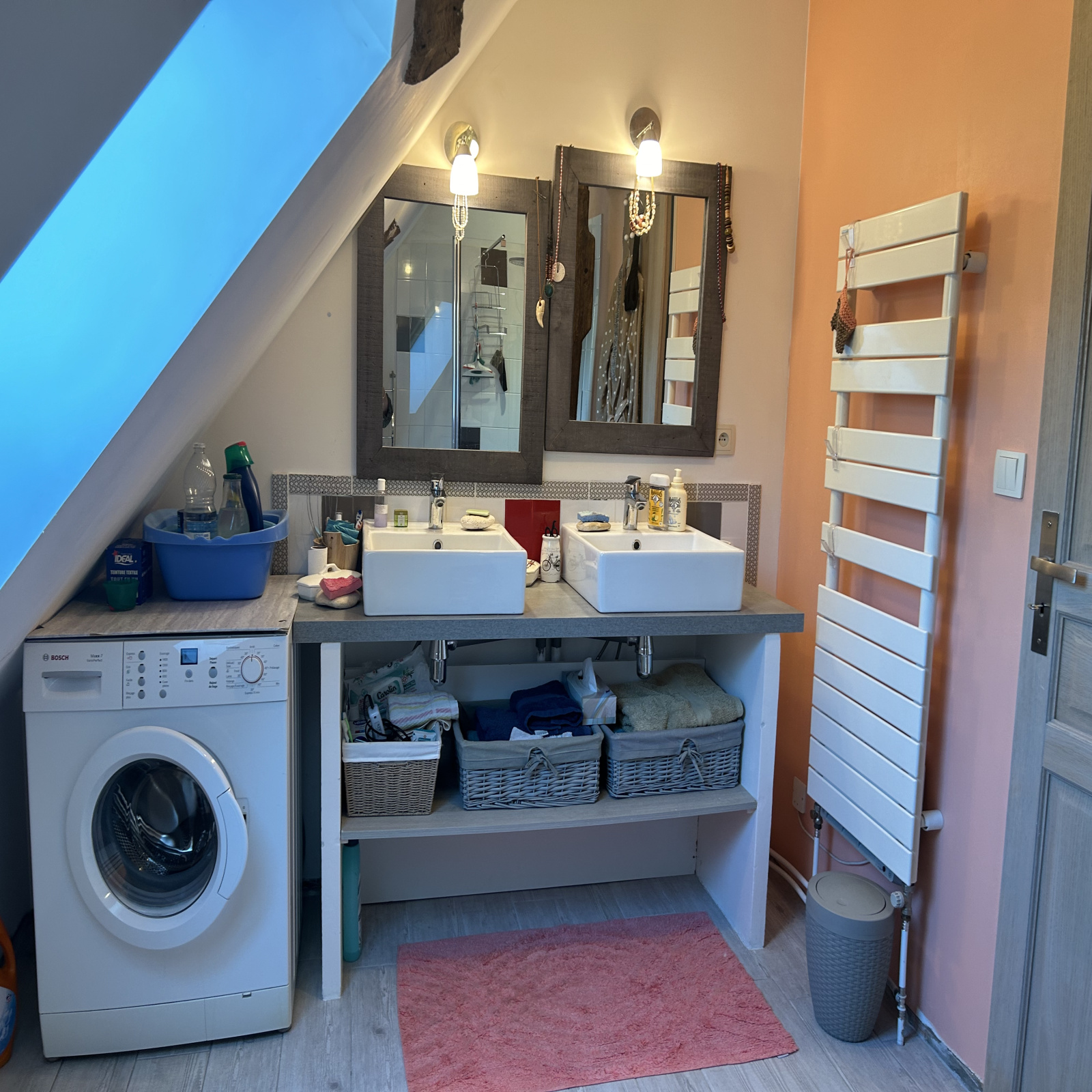 4 chambres dont 2 chambres spacieuses en rez de chaussée avec salle d'eau et wc et à l'étage 2 chambres, espace bureau, rangement avec salle de bain et WC.