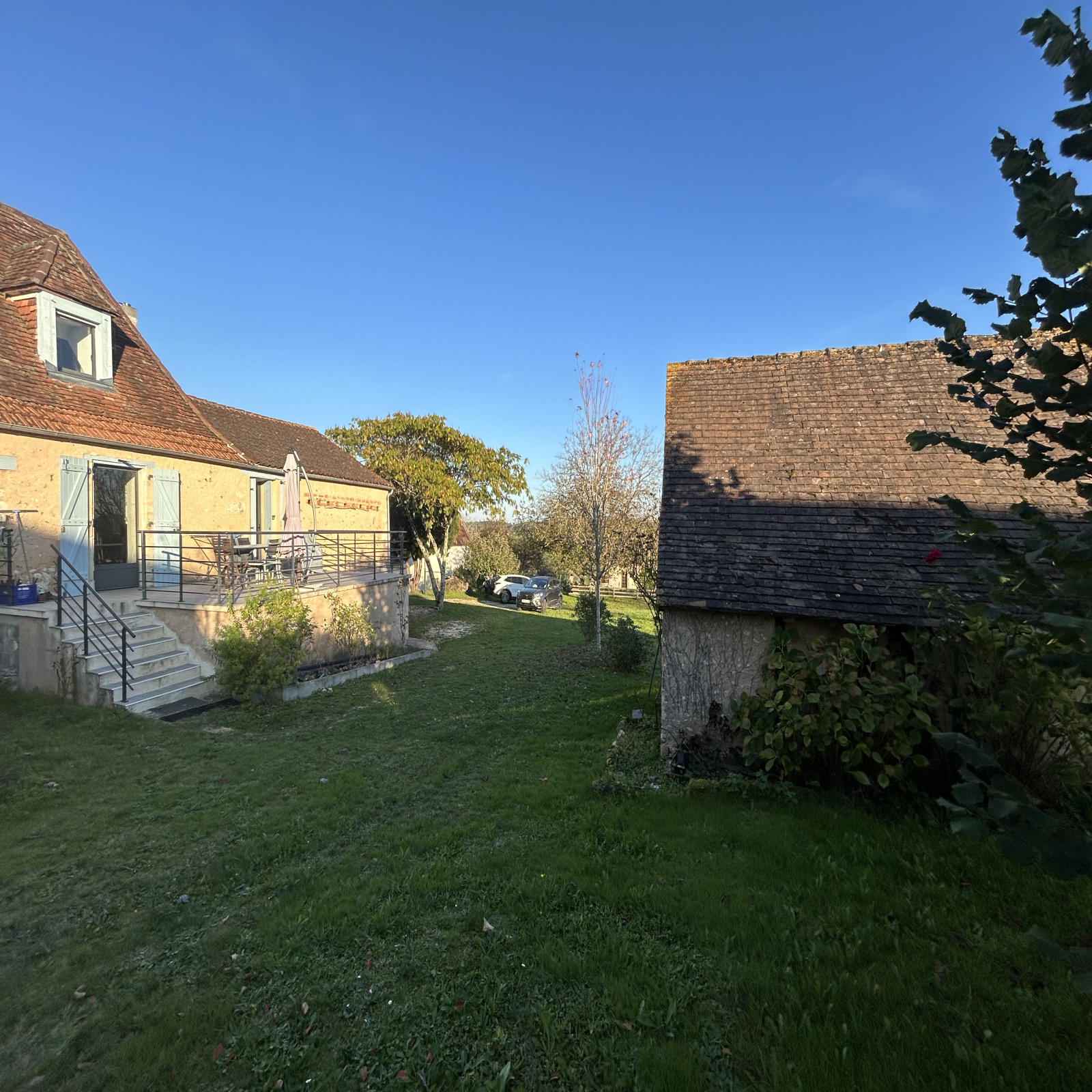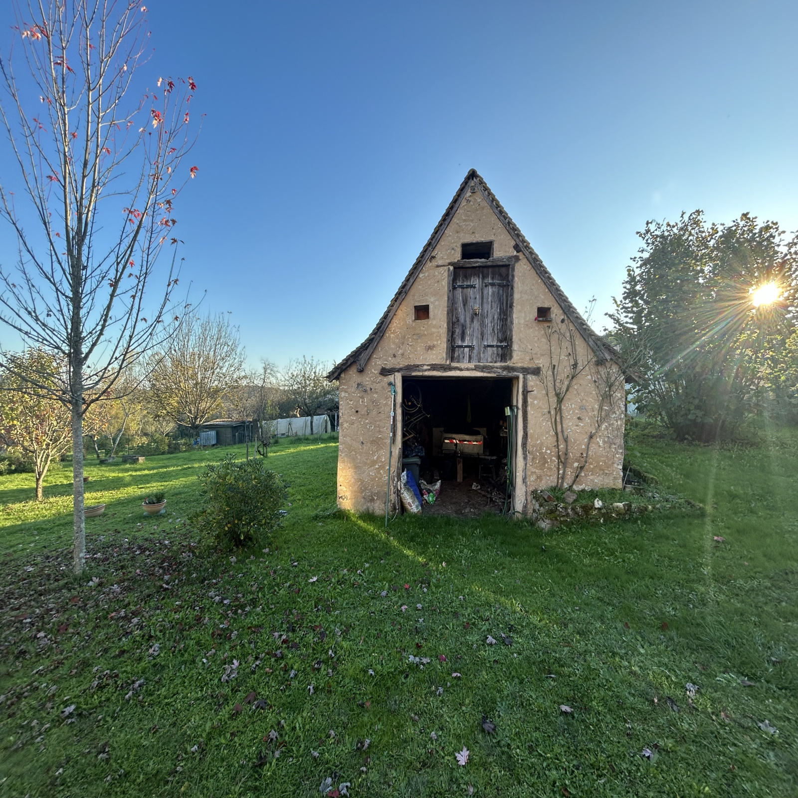 le jardin arboré dispose de 2 dépendances garage et grange (ancienne porcherie) et la maison sous la terrasse dispose d'un atelier buanderie également.
